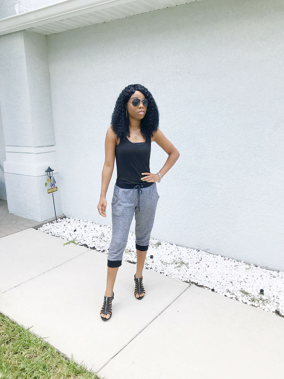Happy Sunday Loves, today I decided to go casual but dress it up a little with these cute pair of heels. This of outfit was really easy to put together. I had the tank top,joggers and heels for a while. Joggers and heels was once two unlikely pairs but in recently years joggers and heels have become a very common pair. So here is take on the look.